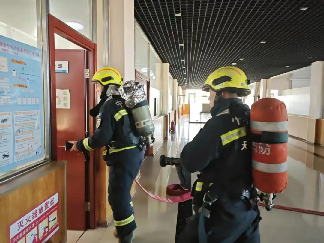 华明消防大队接警后快速响应,抵达现场立即铺设水带、连接水源,协同公司消防组突破“火场”,成功将被困员工转移至安全地带。整个过程中,